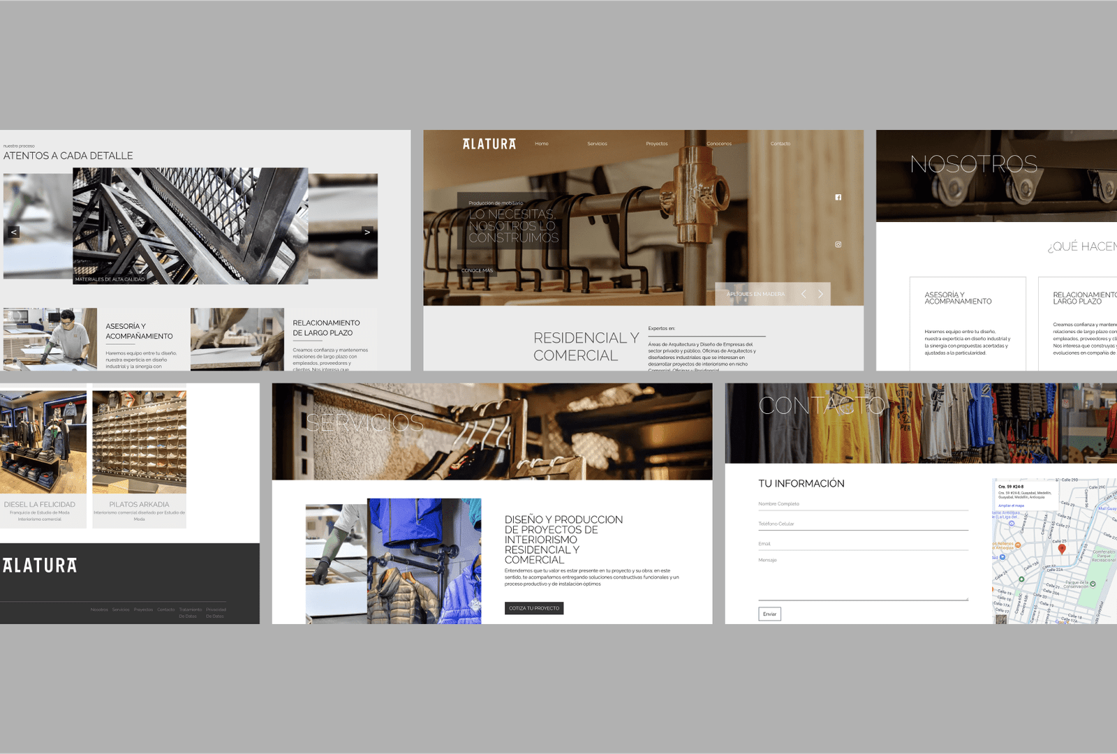Para alatura creamos una identidad sólida y memorable, moderna y limpia. Enfatiza en el uso de fotografía de alta calidad, evocativa, que resalte la calidad de los productos, acompañado de un uso tipográfico limpio y moderno. Además creamos un símbolo haciendo uso de la letra A, que se modificó para darle un carácter particular a la marca.