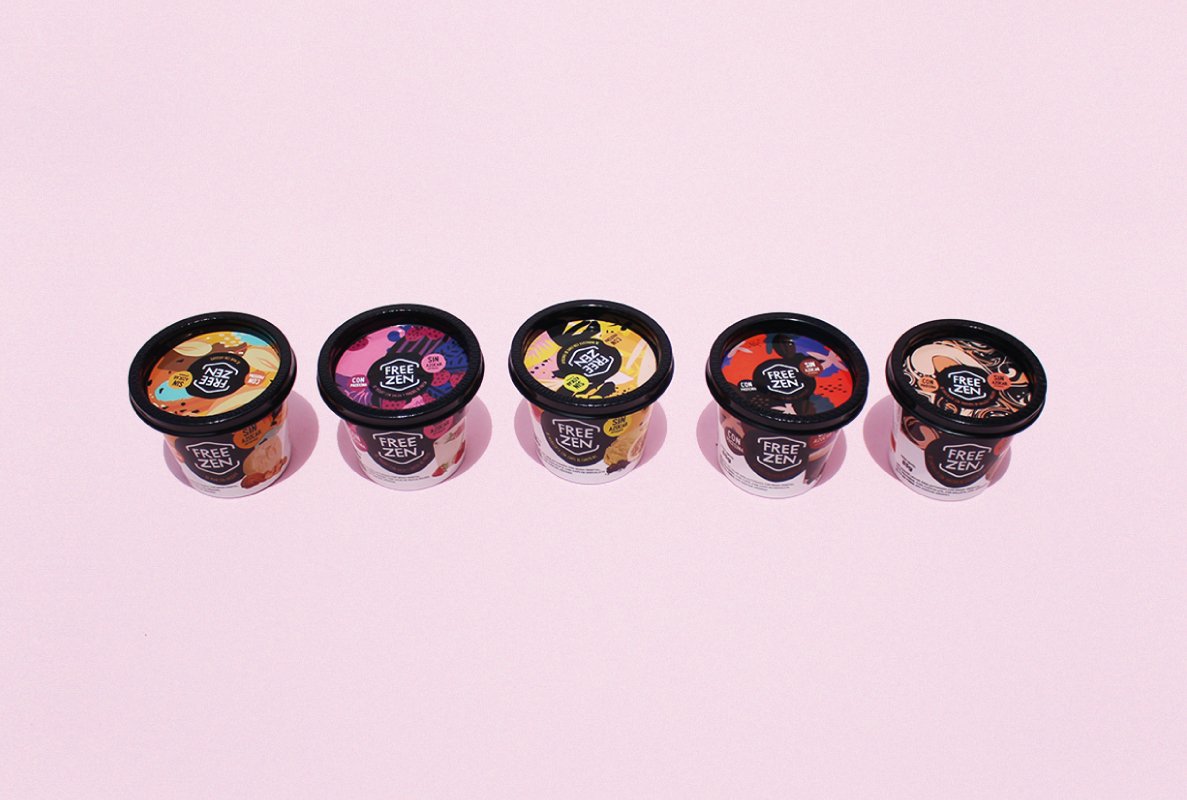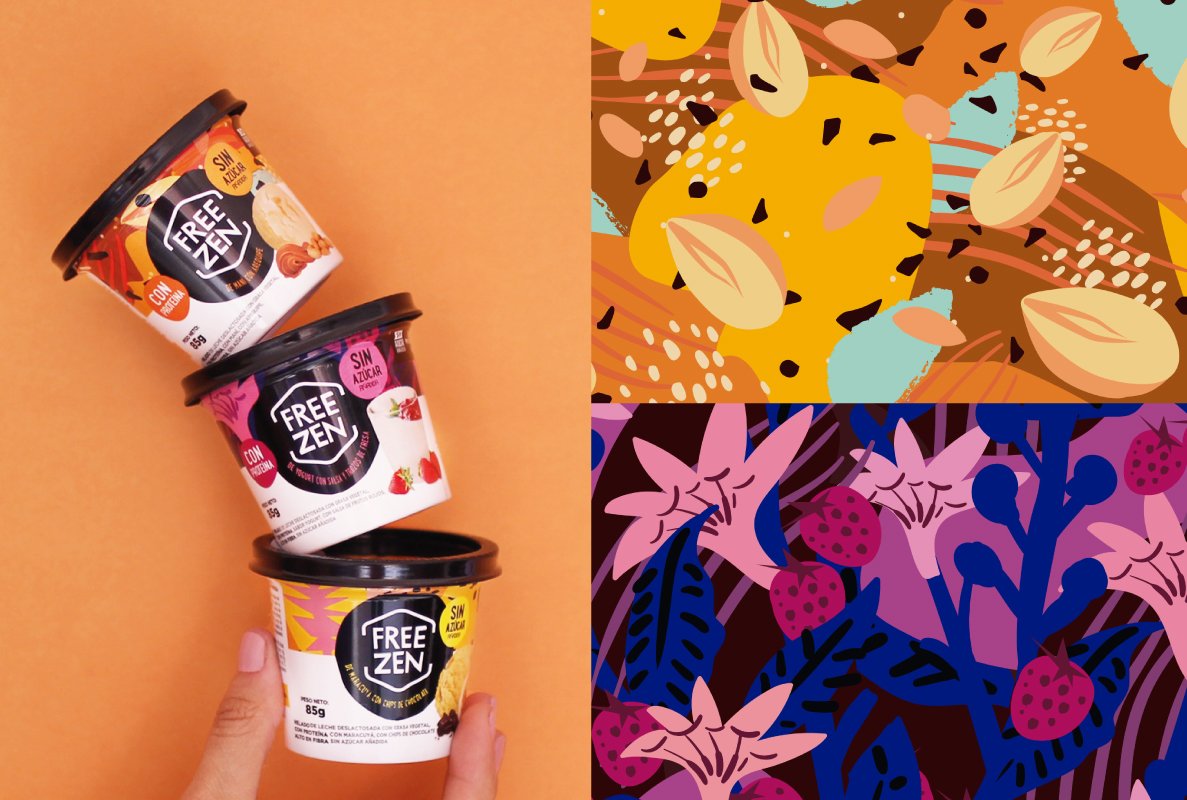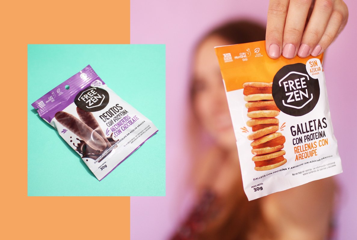 También diseñamos un conjunto de empaques para snacks y helados donde el color y la alegría son los protagonistas, por medio de ilustración y fotografía creamos empaques evocativos y atractivos, que nos hablan del contenido pero también de la esencia de Freezen, la libertad de vivir y disfrutar lo que más nos gusta.